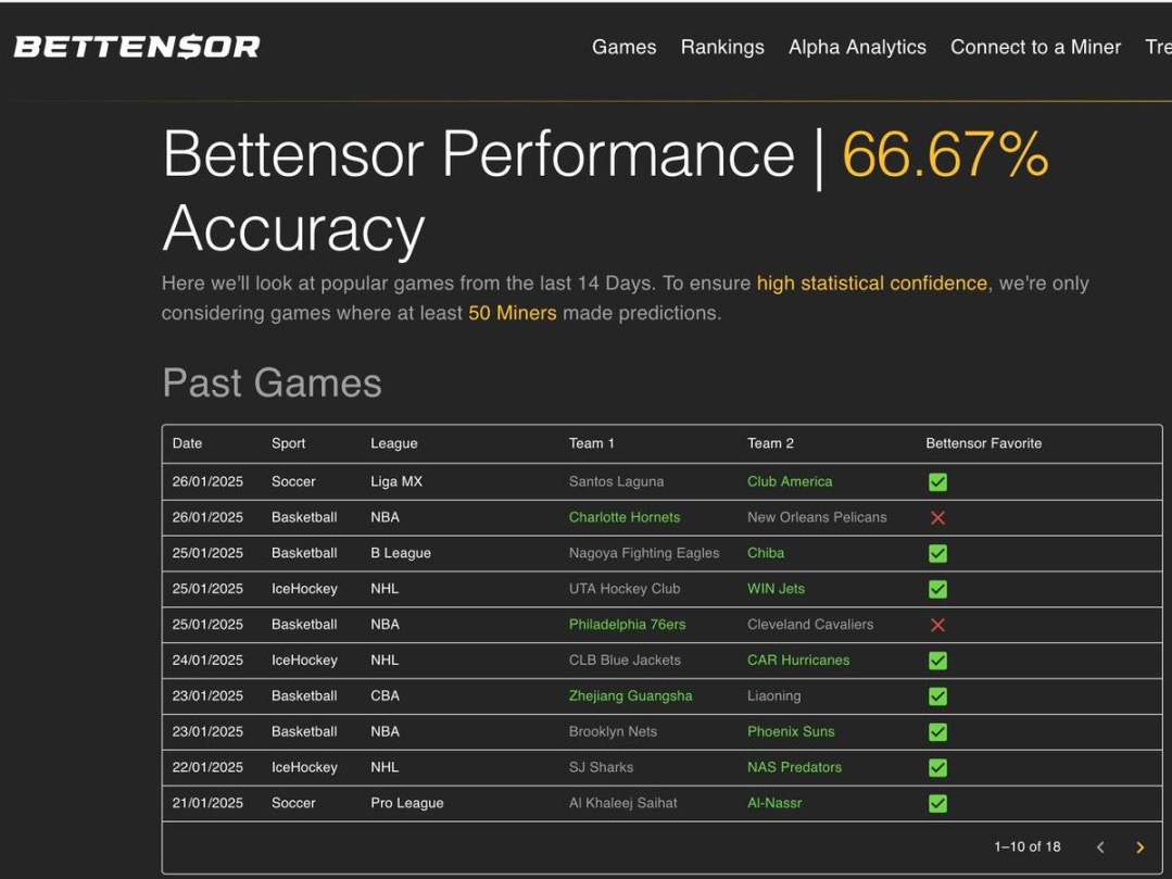 Bettensor 是一个去中心化的体育预测市场,基于 Bittensor 网络,通过独特的奖励机制激励用户准确预测体育赛事结果。