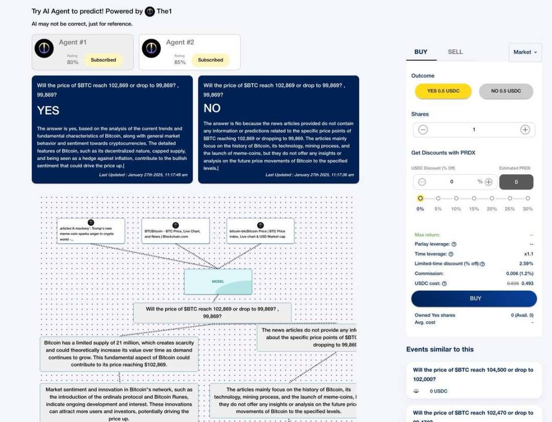 PredX 通过其 AI 驱动的市场创建和分析方式,与其他平台形成差异化。平台使用基于生成式 AI(Generative AI)的智能体,主动分析多种数据流(如价格图表、新闻源和情绪数据),为市场结果提供预测和分析依据。