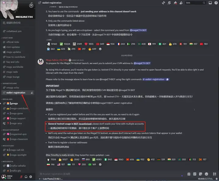领测试币方式:进入官方 Discord 后,点击“wallet registration”