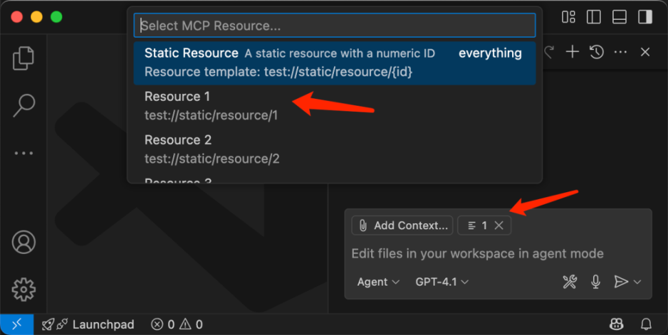 且实现的还有点敷衍。比如 Resources、Prompts 的使用方法如下:
