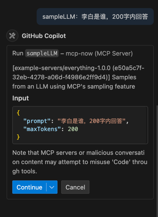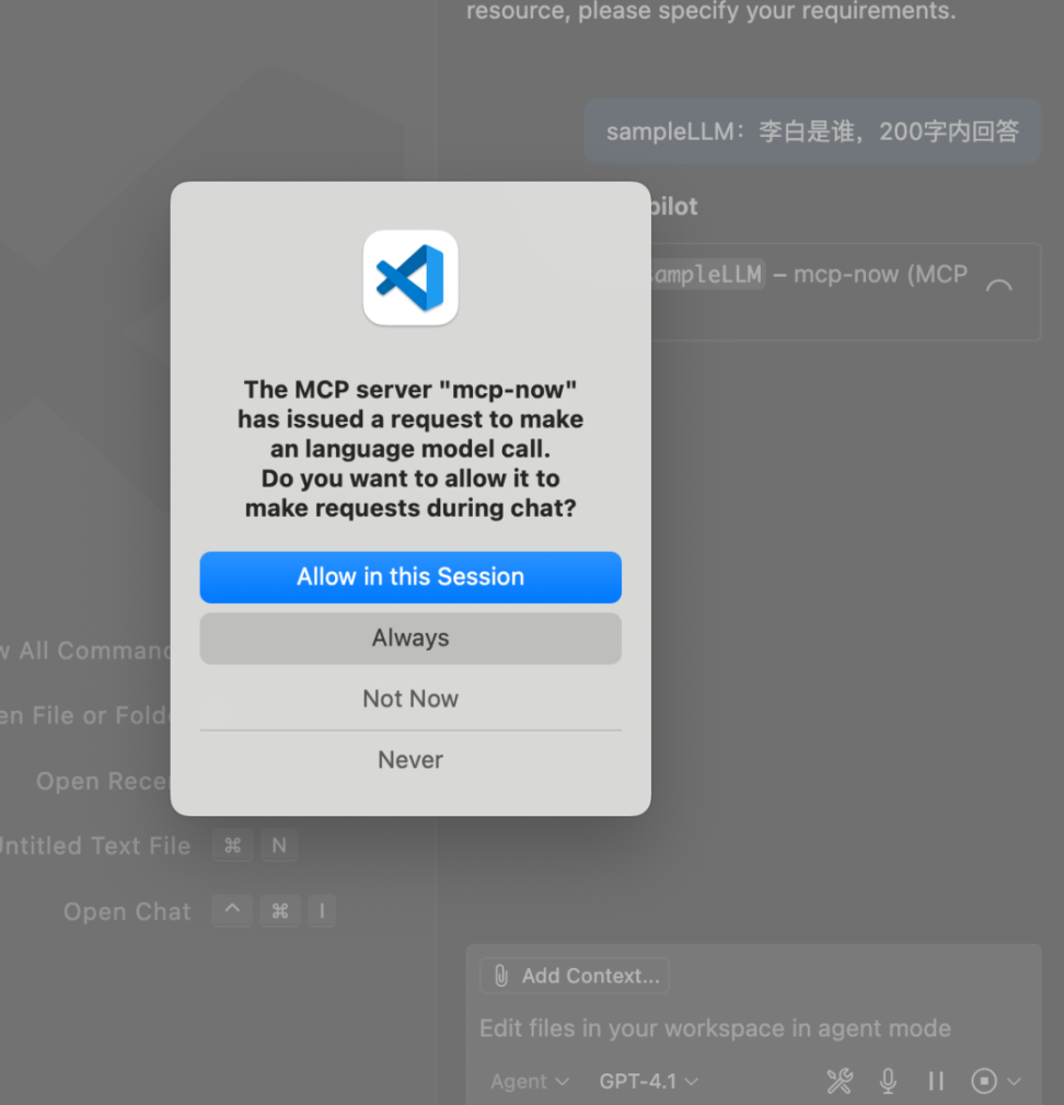 会弹出对话框要求用户确认,允许 Server 调用大模型。