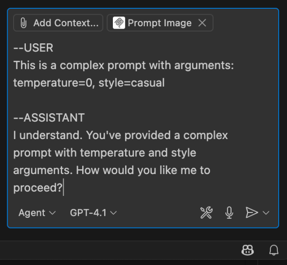目前 Prompt 支持还不是很完整,比如一旦 Prompt 中同时包含 User + Assistant 的消息后,会变成这样。直接发给 AI 的话 AI 还是会迷茫。