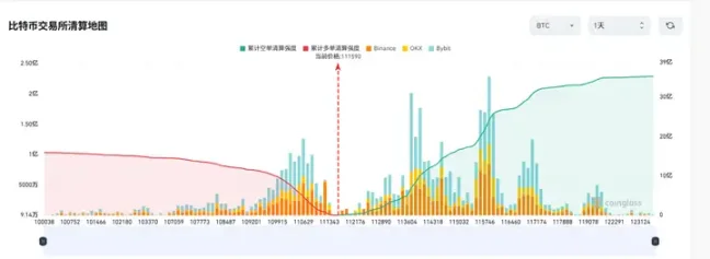 据 Coinglass 数据,若比特币跌破 11 万美元,主流 CEX 累计多单清算强度将达 11.28 亿。反之,若比特币突破 11.5 万美元,主流 CEX 累计空单清算强度将达 13.32 亿。