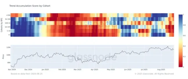 glassnode 数据显示,所有比特币持有群体均已明确进入抛售套现阶段,其中以持有 10 至 100 枚比特币的群体为首。各群体行为的一致性凸显出,市场正涌现广泛的卖方压力。