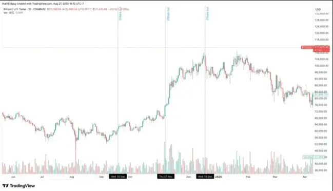 如果比特币在议息会议前大幅上涨,那么历史重演的风险就会增加——即交易员在宽松政策落地后“卖出事实”,导致“涨后即跌”的局面。