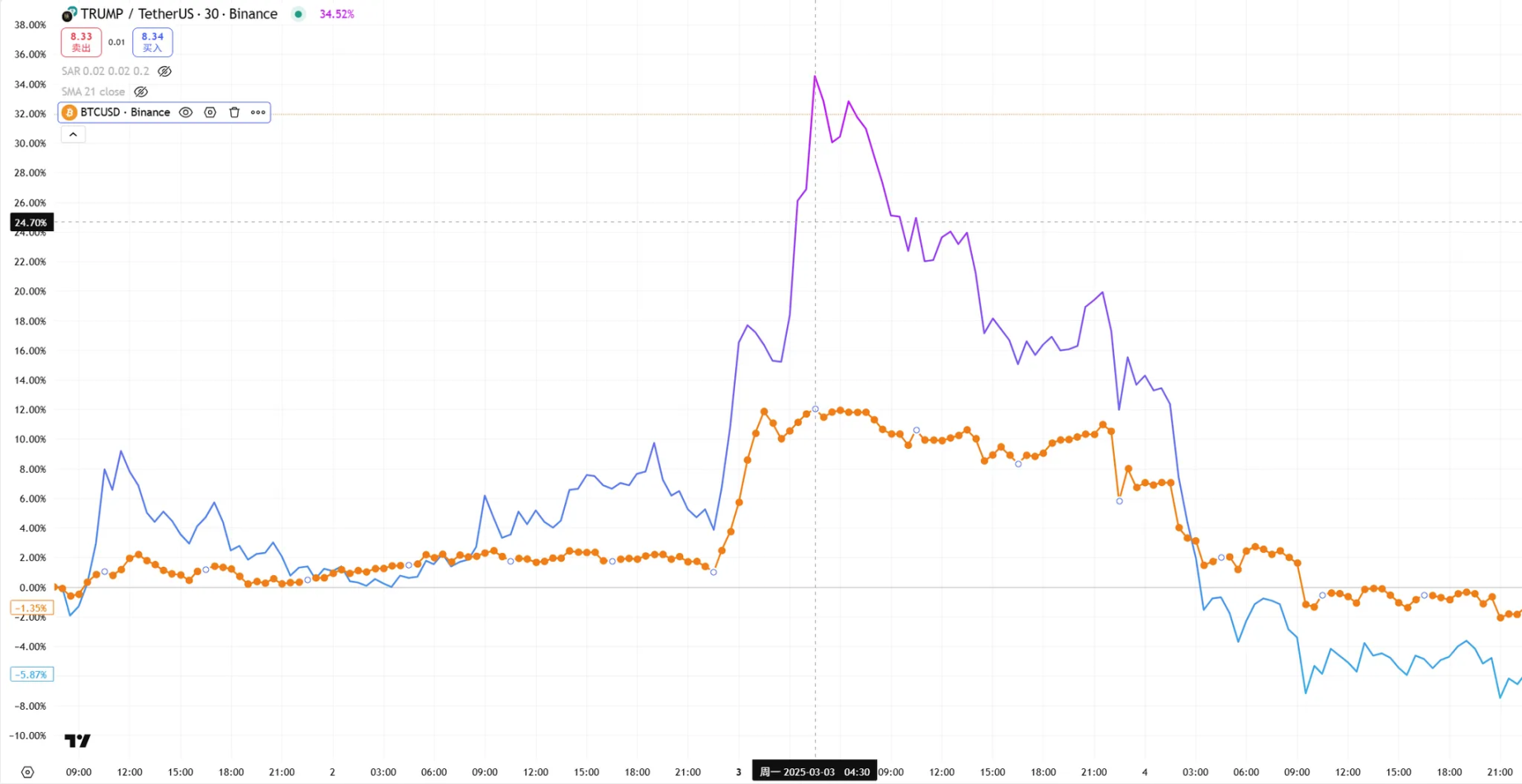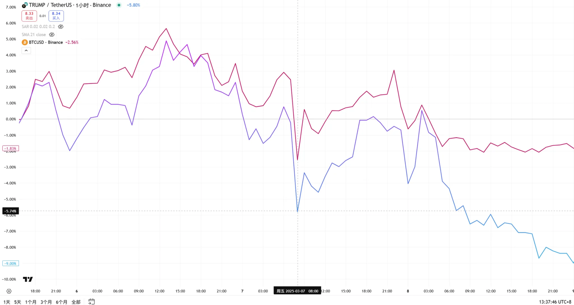 虽然这一行政令因未涉及从市场回购更多比特币而低于部分投资者预期,导致比特币价格短期跌至 $86,500,代币 TRUMP 也伴随大盘走低但未出现明显超跌。