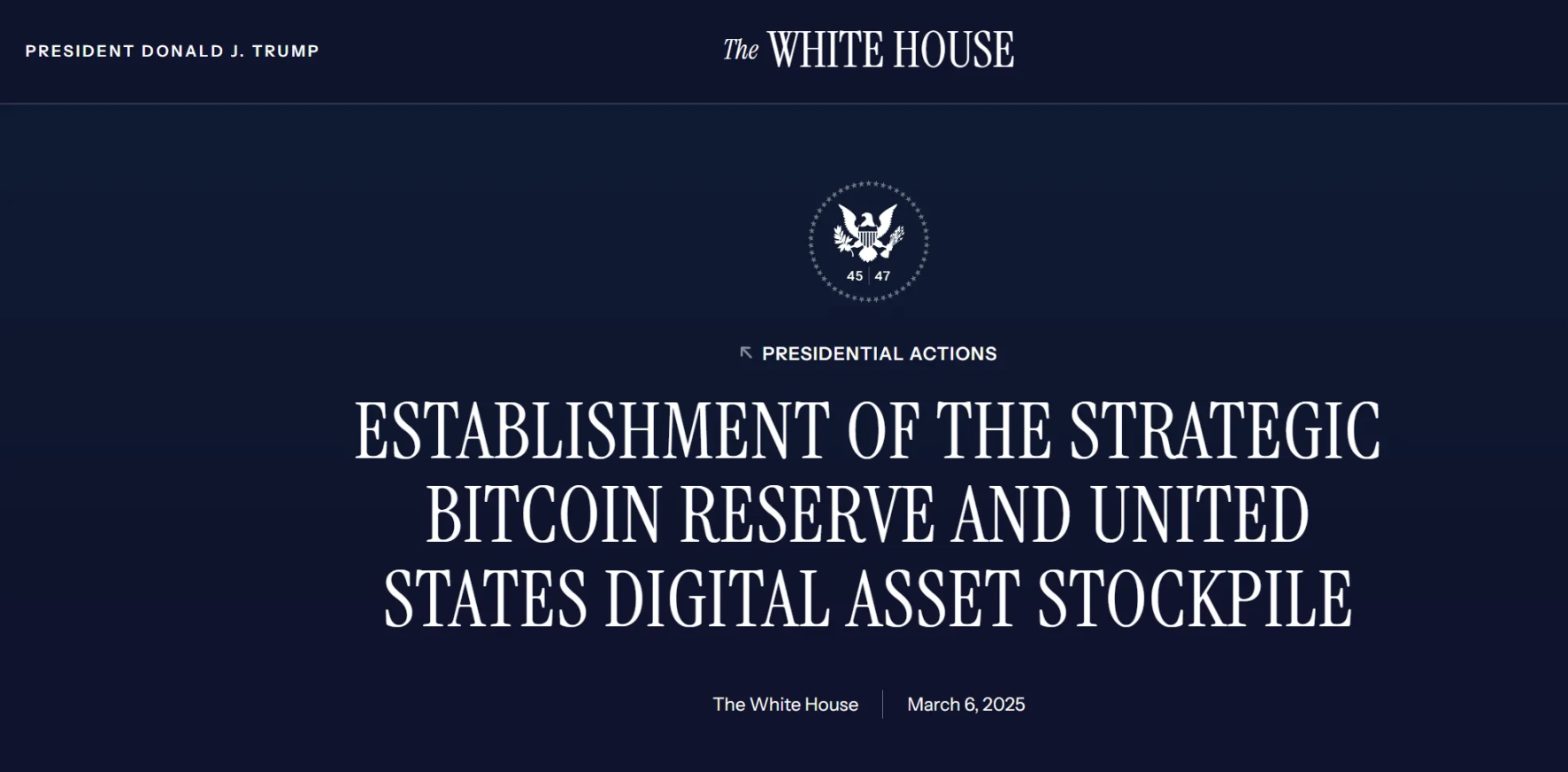 3 月 6 日,Trump 签署了战略比特币储备行政令,正式确认联邦政府将保留现有的 20 万枚比特币不予出售。