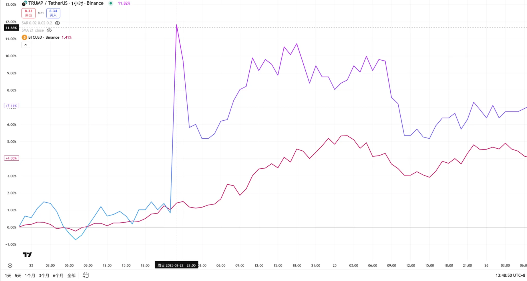 对 TRUMP 代币影响:间接利好,但在价格上并未出现明显反应,整体处于横盘阶段。