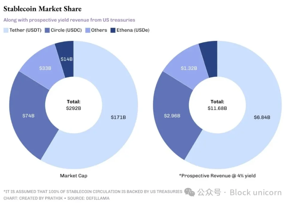 稳定币领导者 Tether 目前持有超过 1000 亿美元的储备,产生超过 40 亿美元的利息收入。这比星巴克上一财年在全球范围内销售咖啡的总利润 37.61 亿美元还要多。而 USDT 发行方仅通过将其储备投资于美国国债就实现了这一点。Circle 在去年上市时也采用了同样的方法,强调其浮动资金是其核心收入来源。