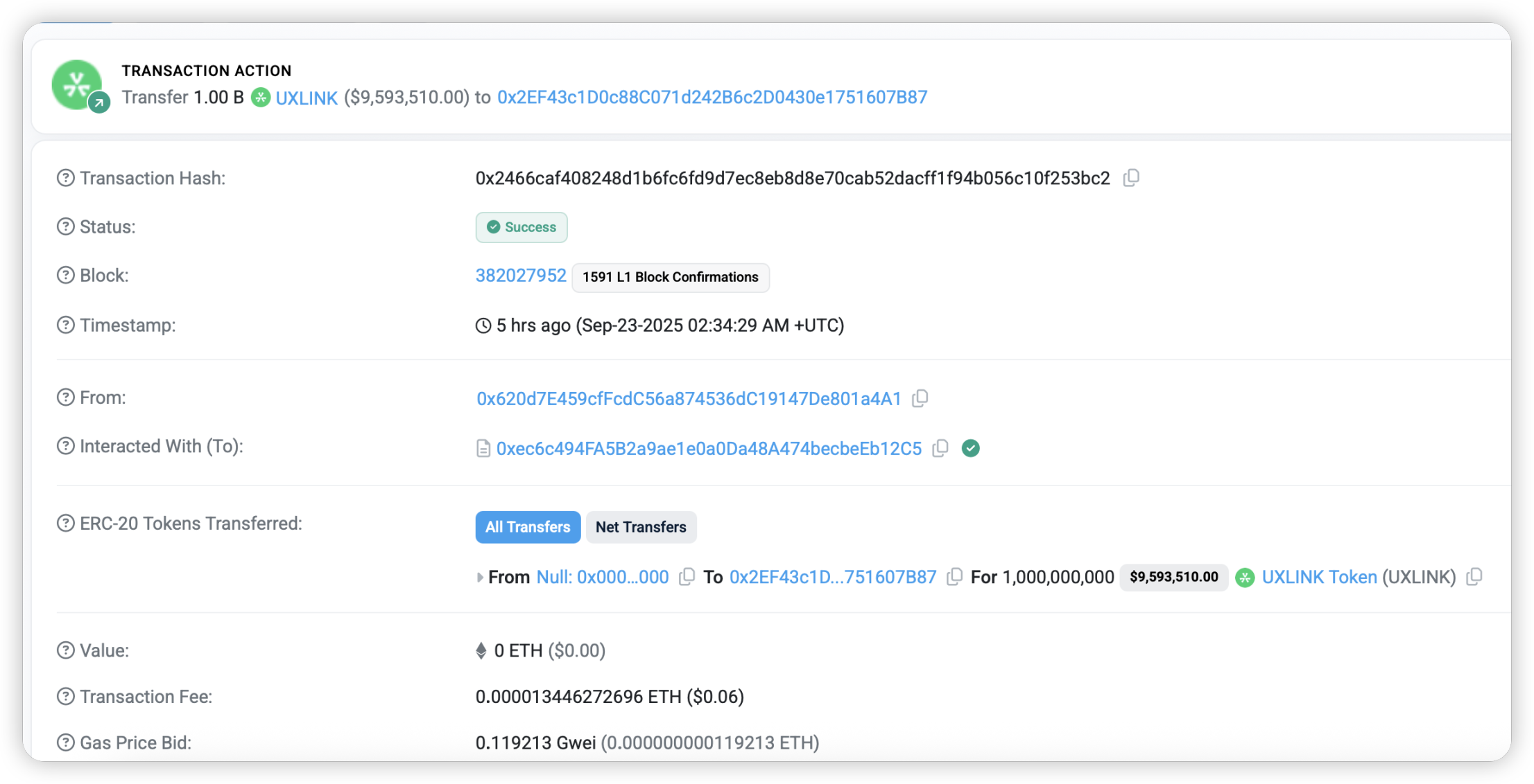 未经授权的 1B $UXLINK 铸币: https://arbiscan.io/tx/0x2466caf408248d1b6fc6fd9d7ec8eb8d8e70cab52dacff1f94b056c10f253bc2