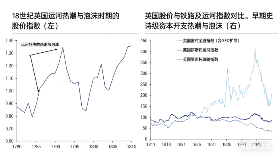 德意志银行指出,这两次事件的共同点是:运河和铁路确实永久性地改变了经济格局,但那些在狂热顶点买入的投资者,却承受了巨大的财务损失。这证明了「一个罕有繁荣 - 萧条周期的金融市场,几乎从未在巨大的资本开支热潮中出现过」。