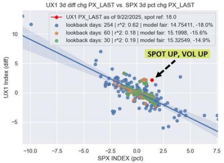 市场并未理会这些潜在风险,反而再次追逐美股指数的上行期权,呈现出「价格上涨,波动率也上涨」(Spot Up, Vol Up)的局面。数据显示,投资者正在增持高贝塔、高波动性和空头集中的股票,并在股指创下历史新高之际增加杠杆。