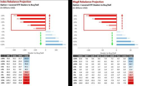 然而,危险在于,系统性资金流已经「为波动率挤压下的不对称卖出做好了准备」。期权和杠杆 ETF 市场的综合再平衡及对冲需求显示,潜在的卖出压力与买入需求之比接近 2:1,这构成了巨大的「去杠杆化流动性风险」。