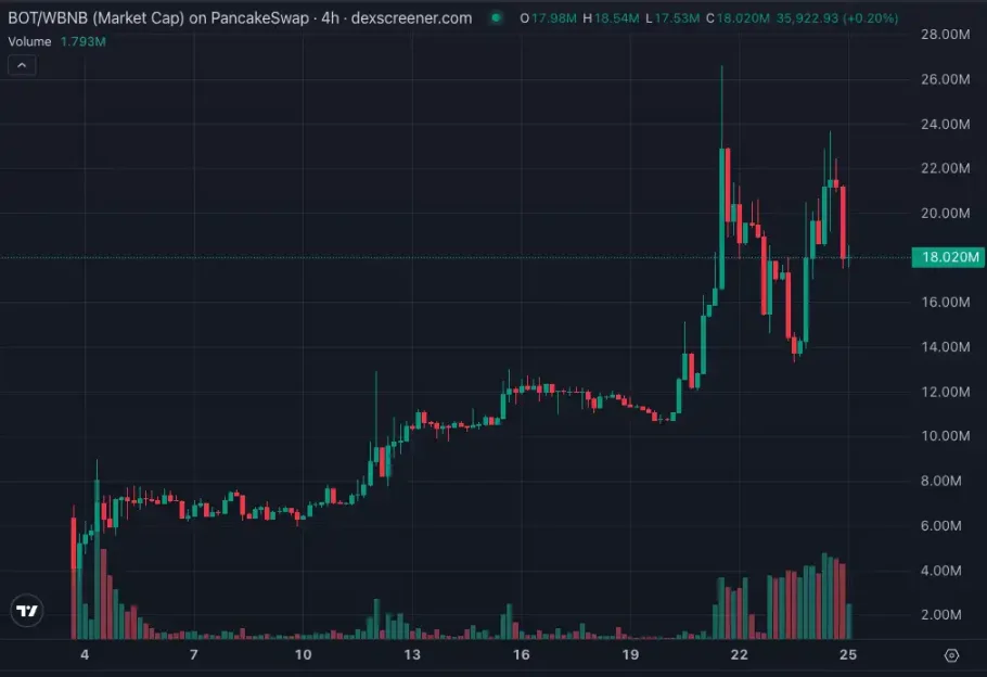Hyperbot 的代币 BOT 已在币安 Alpha 上线,因近期 Aster 的火爆以及第二期空投活动的开始,HyperBot 的代币 $BOT 的价格走势也相当喜人,现市值达到了 1500 万美元,FDV 更是达到 1.4 美元。对于观察资金行为的用户来说,Hyperbot 已经成为功能相对完善的助手。