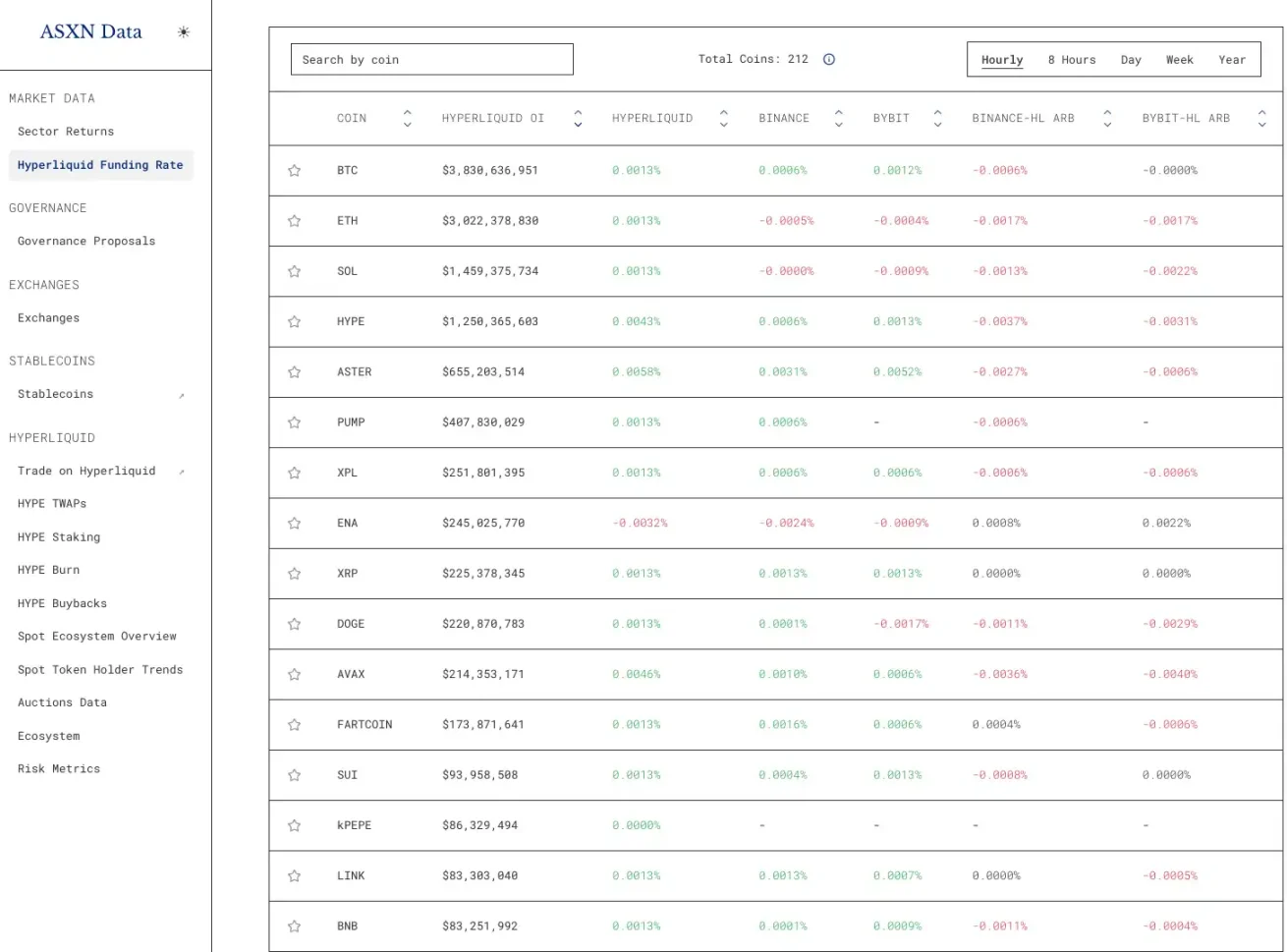 而 ASXN 虽然不如 Loris 在资金费率这个数据赛道做的完善,但是他的功能远不止于此。ASXN DATA 是由加密研究员 ASXN 所创建的看板,它提供了几乎一整套 Hyperliquid 数据仪表盘。