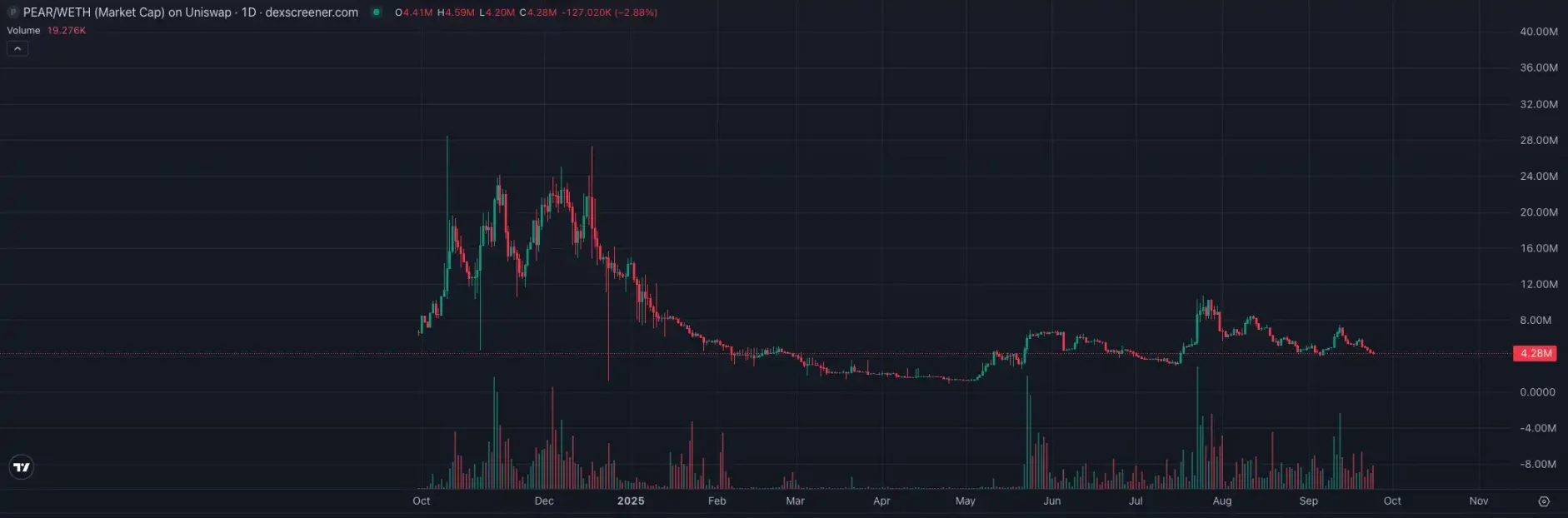 当前 Pear Protocol 的平台代币 $Pear 在 Arbitrum 上发行,现市值 420 万美元,FDV1500 万美元。