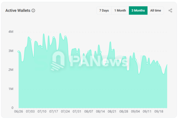 日活用户方面,同样也走出类似的状态。8 月份,以太坊的日活最高达到 55.72 万,达到近 3 年的最高。另外,这种上涨同样不再是昙花一现,而是在一段时间内都保持了。截至 9 月 22 日,其日活数据仍保持在 50 万以上。