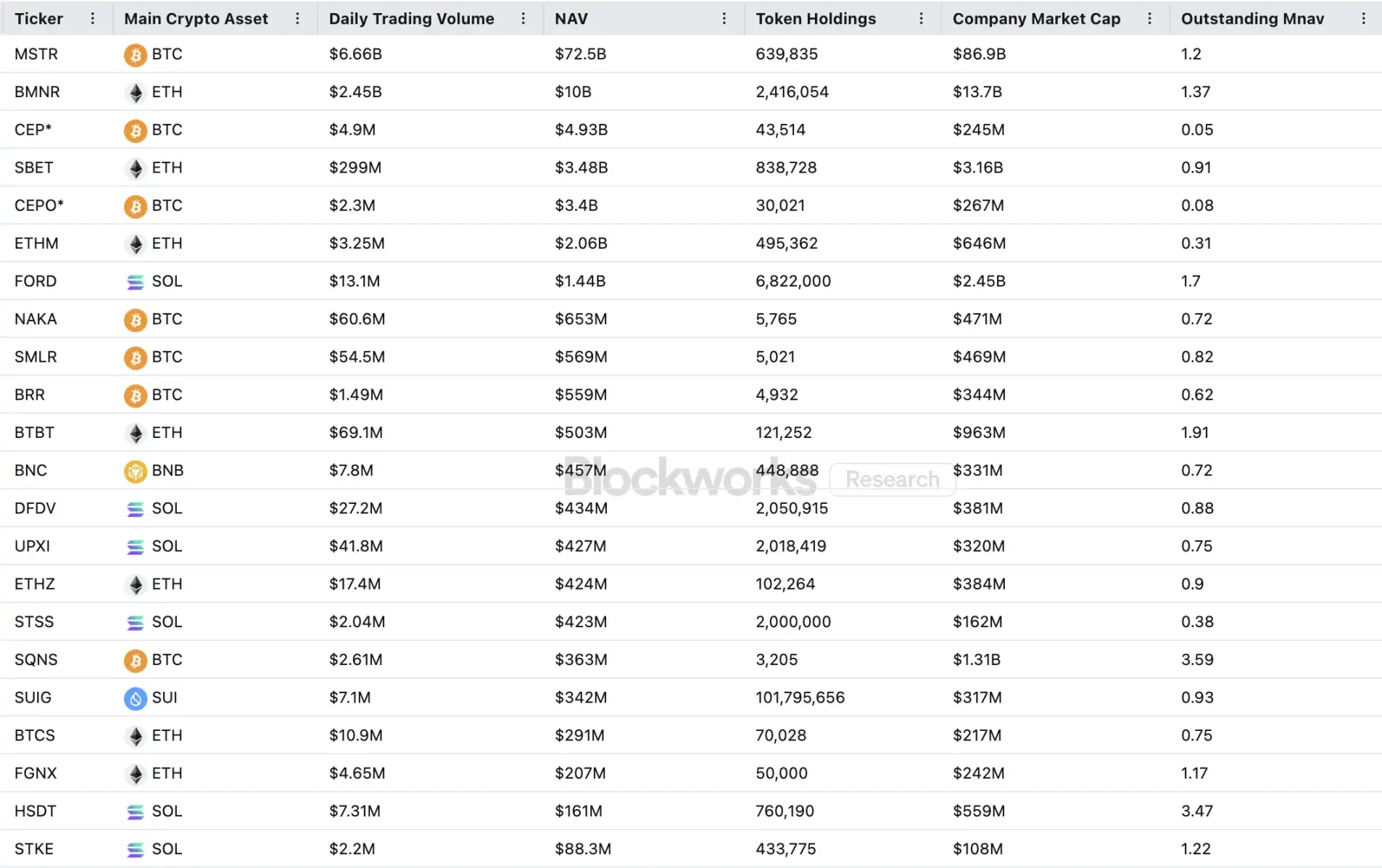 然而,这场资本狂欢在推高价格的同时,也引发了广泛质疑。MSTR 的 mNAV(市值与账面资产净值之比)一个月内从 1.6 跌至 1.2,而前二十家加密财库公司的 mNAV 更有三分之二低于 1。有关资产泡沫、内幕交易等质疑声层出不穷,当下这一新型资产配置潮流正面临前所未有的监管挑战。