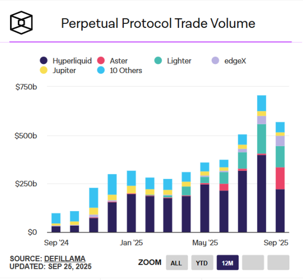 2025 年的 Perp DEX 市场呈现出惊人的集中度:前四大平台(Hyperliquid、Aster、Lighter、edgeX)合计控制了高达 84.1% 的市场份额。
