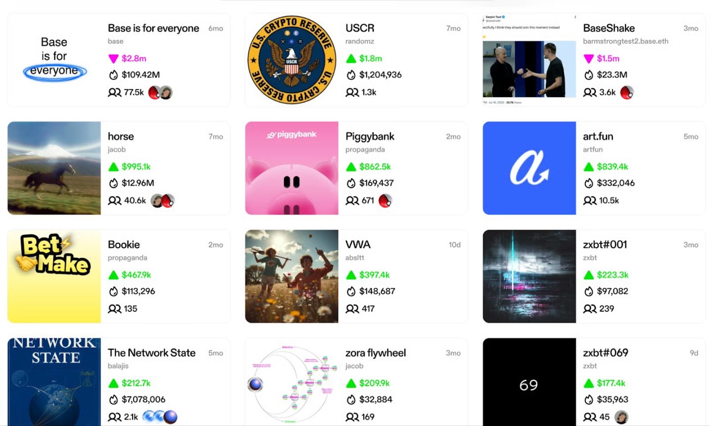 截至周三上午,Zora 平台市值最高的 12 个帖子中,有 3 个由 Horne 本人或 Base 生态发布,仅有 1-2 个属于艺术创作,这说明艺术本身并非吸引平台交易者的核心因素。