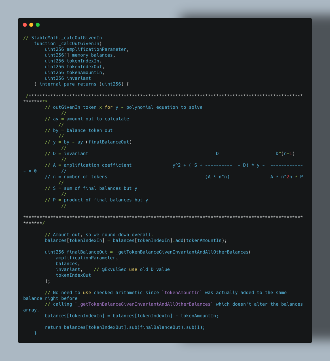 2. 不变值计算对精度敏感:不变值 D 的计算依赖缩放后的 balances 数组,精度损失会直接传递到 D 的计算中,使 D 变小。