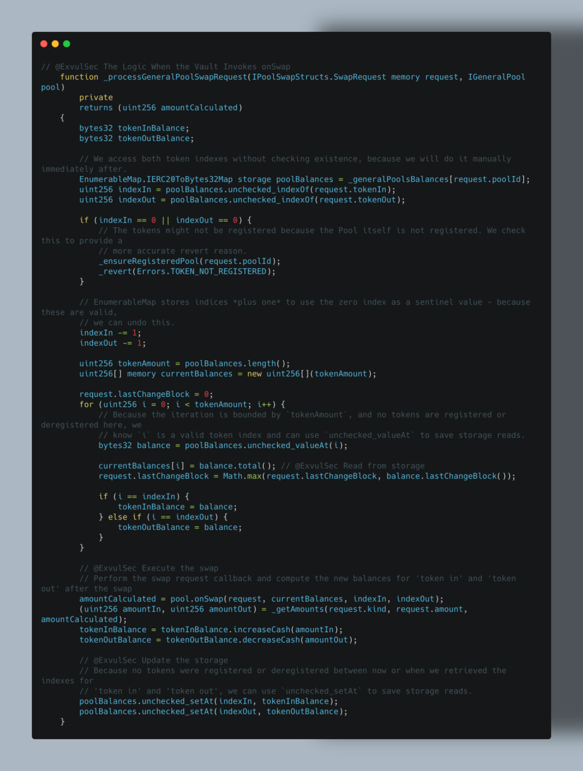 主流程是 Vault 开启的,是怎么导致精度损失累积的呢?答案在 balances 数组的传递机制中。