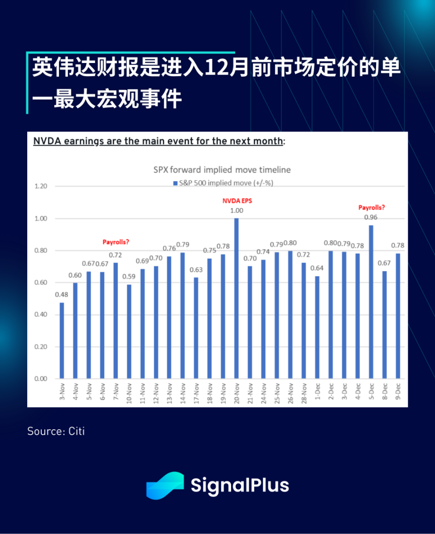 自然,英伟达的财报被视为未来一个月内最大的股市波动事件,其每日对标普 500 指数的盈亏平衡波动预期为 +/- 1%,甚至高于 12 月的非农就业资料包告。