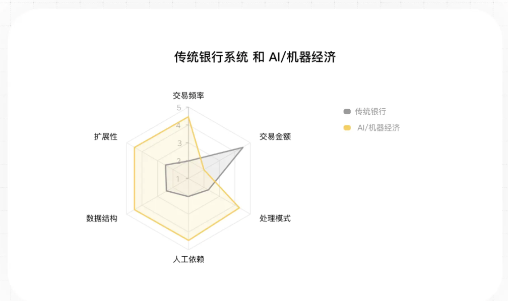 大家可以从推倒重来的角度试想一下,面对如今的 AI 大变局和机器经济的浪潮,如果传统银行体系从未存在过, 我们需要一套怎样的支付、结算与金融体系?