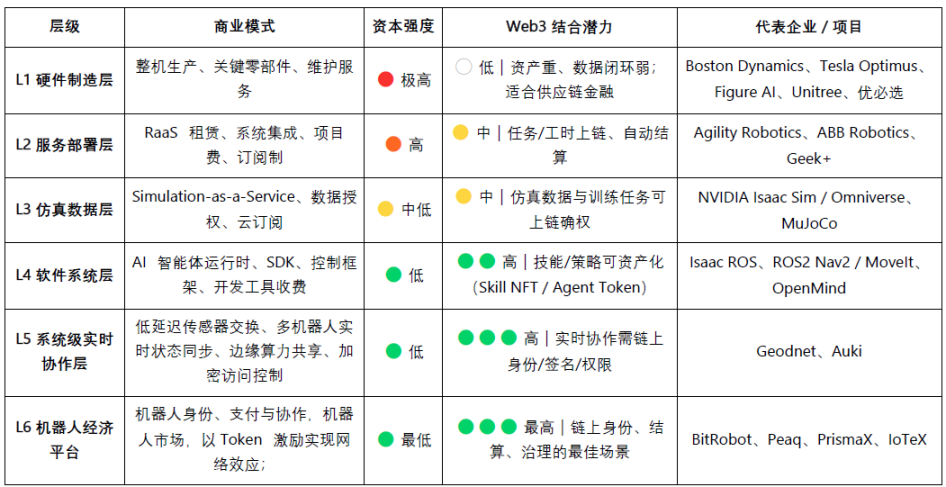 总体来看,短期主要集中在数据采集与激励层;中期有望在「稳定币支付 + 长尾数据聚合」及 RaaS 资产化与结算层 实现突破;长期,若人形机器人规模化普及,Web3 或将成为机器所有权、收益分配与治理的制度底层,推动真正的去中心化机器经济形成。