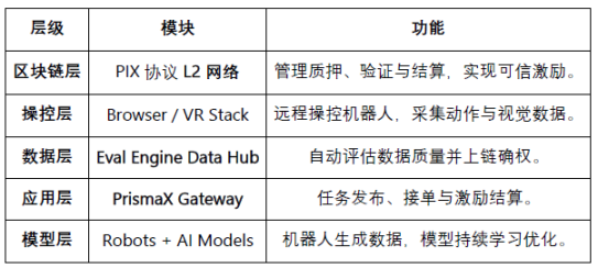 PrismaX 通过去中心化激励机制,将人类操作行为转化为机器学习数据,构建从 远程操控 → 数据采集 → 模型训练 → 链上结算 的完整闭环,实现「人类劳动即数据资产」的循环经济。