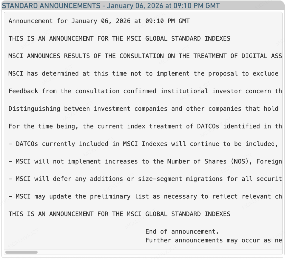 上周,加密市场最担忧的黑天鹅 “MSCI 剔除 MSTR”的警报暂时解除。作为全球最具影响力的指数编制公司,MSCI 明晟 正式宣布搁置将“数字资产财库公司”(DATCOs)移出全球指数的提案。这看似是一场胜利,但结合 MSTR 同期披露的财务底牌来看,长期的疑虑并未真正解除。