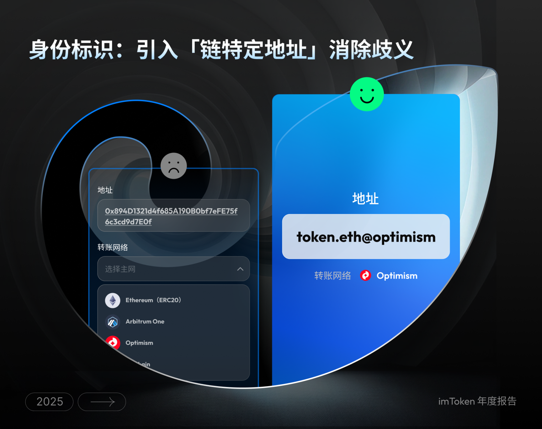 这是 imToken 正在积极探索的转账交互方向。我们计划采用 ERC-7930 & ERC-7828,引入类邮箱的地址格式(address@chain)。