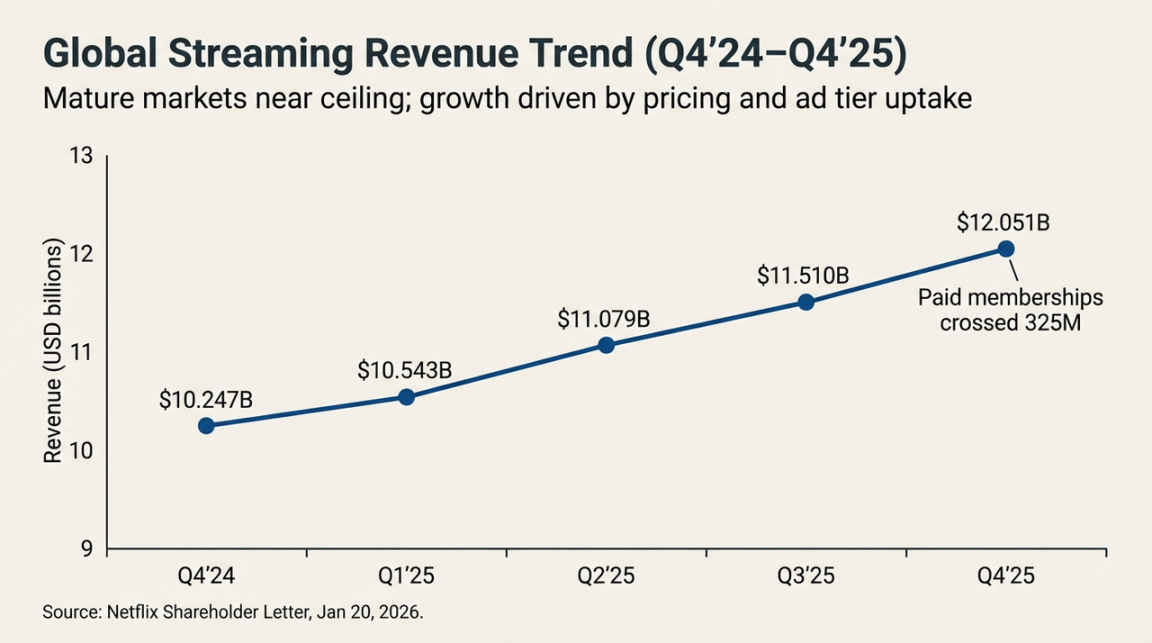 全球流媒体收入趋势(Q4'24-Q4'25)