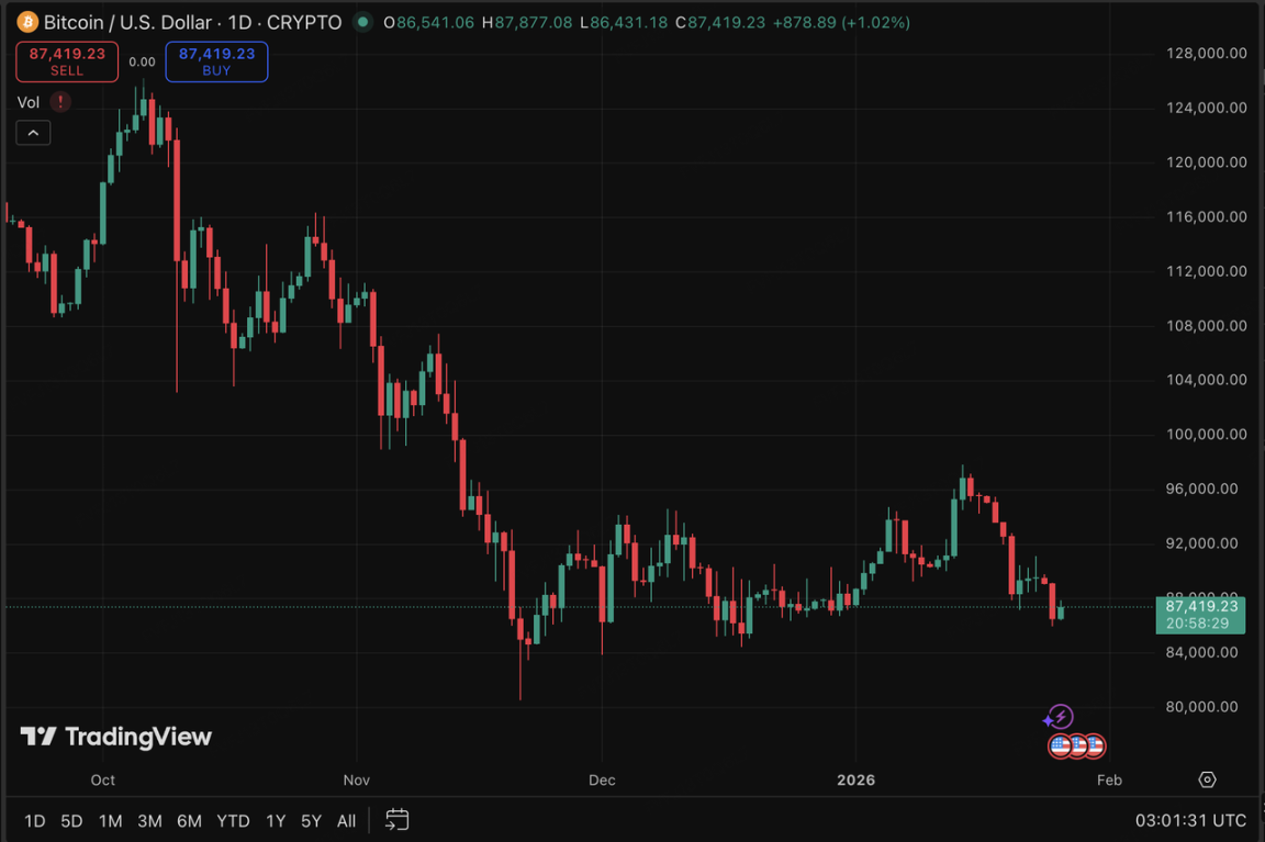 风险资产端则整体转入“防守姿态”。权益市场与风险资产普遍承压(股指期货回撤、亚太风险资产波动上行),加密市场同步走弱:BTC 回落至关键支撑位附近、ETH 跌幅扩大,山寨币与高 Beta 题材跟随回撤,反映在“政策—地缘—风险溢价”共同抬升的环境下,高波动资产更容易被当作流动性调节阀。需要注意的是,这种环境下的回撤往往不完全由链上基本面触发,而更多由跨市场保证金约束、风险平价去杠杆与波动率目标策略放大。