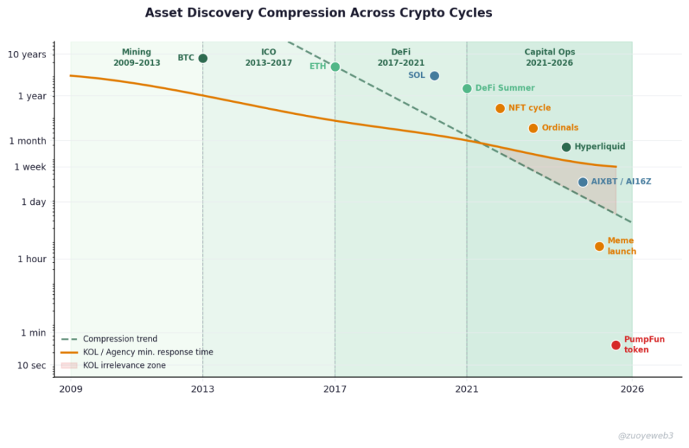 俱往矣,和这些资产发行范式相比,观点市场只进化到 Agency 这种手工协作社,不符合接下来的资产发现叙事,不是发现加密资产、AI 资产,而是下一个时代、下一代人的资产。